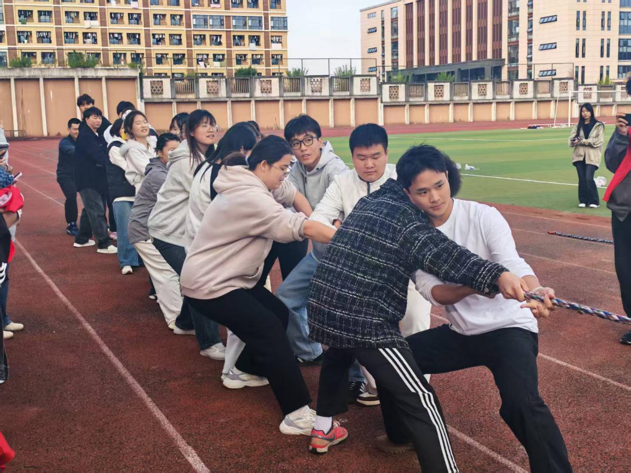 本次比赛采用男女混合团体赛制,每支队伍由12名女生和8名男生组成,既考验个体爆发力,更强调团队协作的默契。赛程分为初赛、复赛、半决赛及决赛四阶段,层层递进的赛制设计让每一场对决都充满悬念。当裁判哨声响起,参赛队员们紧握长绳、马步深蹲,全身力量汇聚于绳上,红绸在“楚河汉界”间来回颤移,每一次偏移都牵动着全场观众的心弦。呐喊声、助威声、口号声交织成激昂的青春交响乐,将赛场氛围推向高潮。