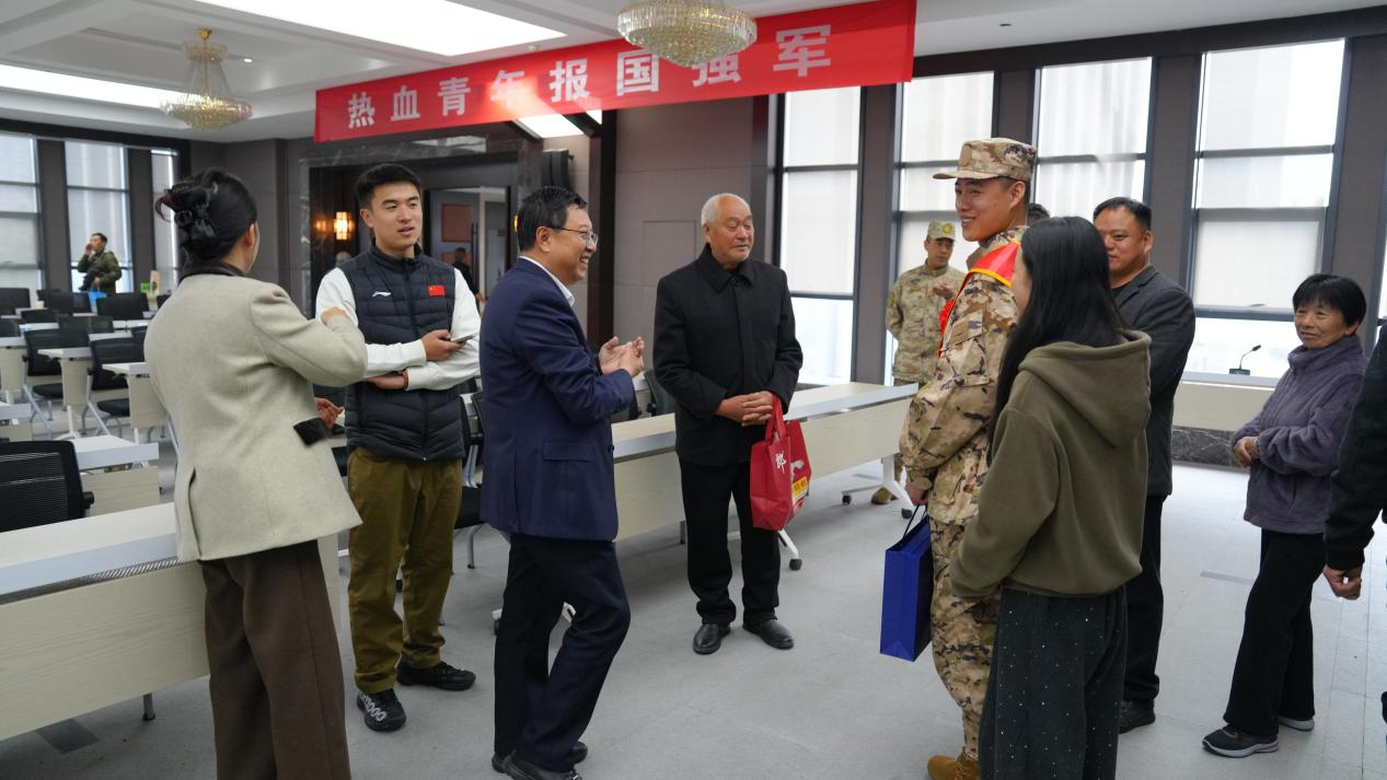 校长还与新兵家长们亲切沟通,深入了解家庭情况、倾听家长诉求,感谢家长们对国防事业和学校征兵工作的理解与支持,并承诺学校将持续做好入伍学生后续服务保障,落实各项优惠政策,畅通沟通渠道。